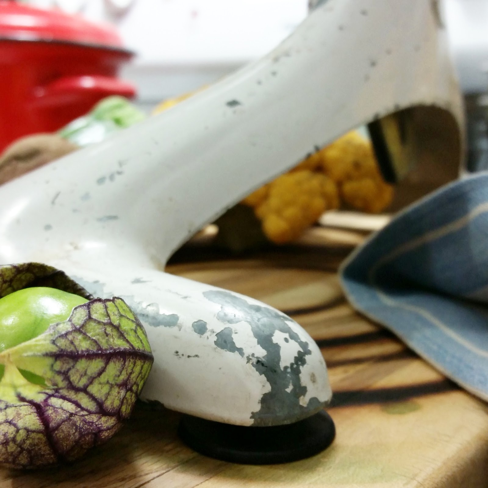 This is a vintage crank grinder, slicer, shredder, thingy that belonged to my Mom. She died 5 years ago on the 5th of this past August. I miss her dearly and it really felt so good to write about this lovely memory. I hope you enjoy it too!